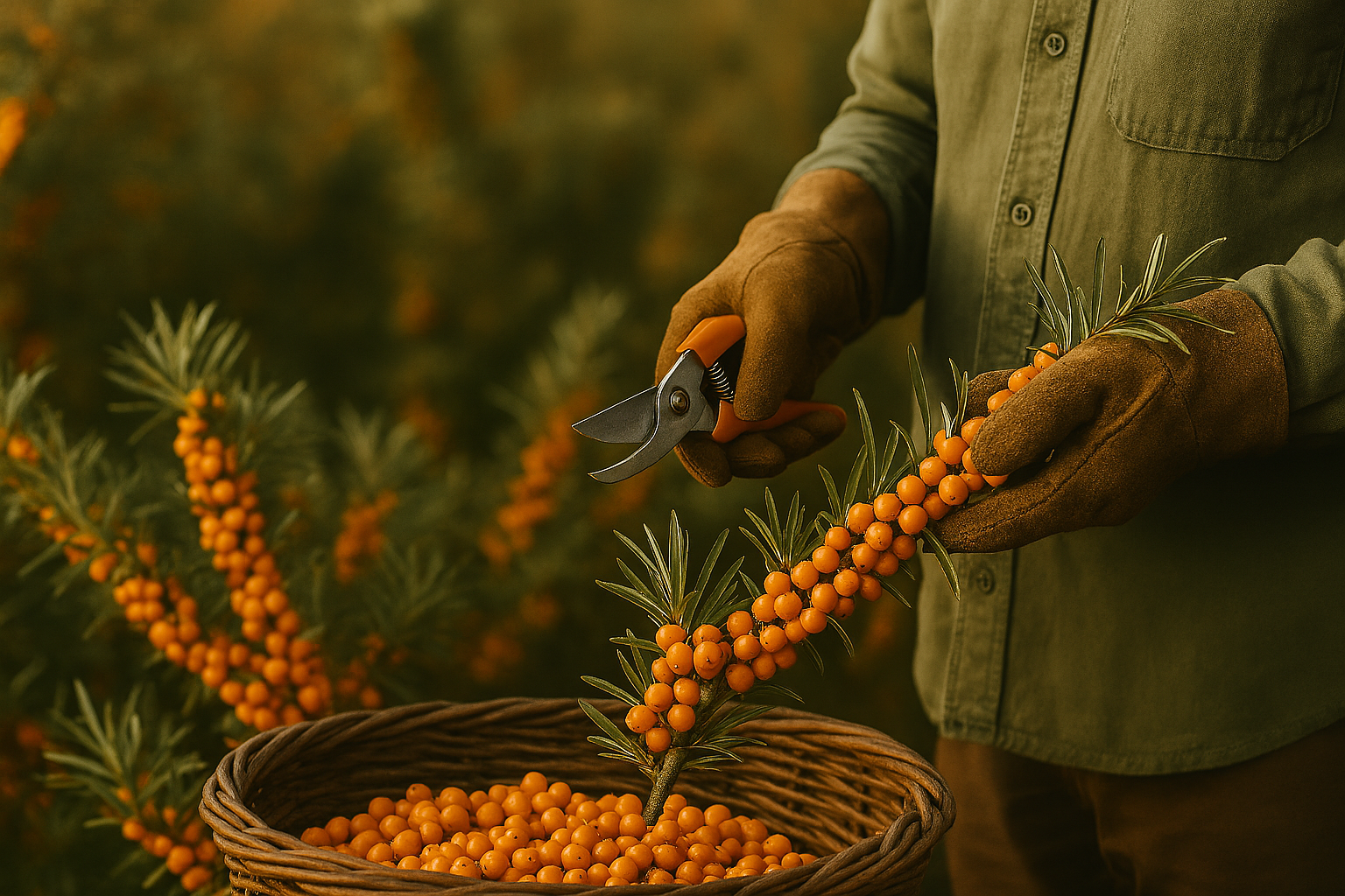 Lucrăm cu grijă, de la recoltarea atentă a cătinei până la procesarea minimă, păstrând toți nutrienții esențiali.